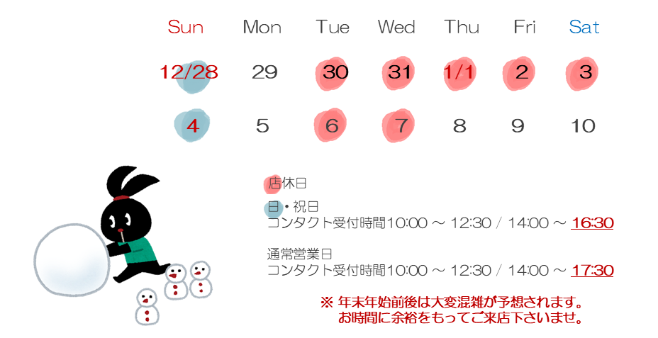 店休日、コンタクト受付時間に十分お気をつけてご来店くださいませ。